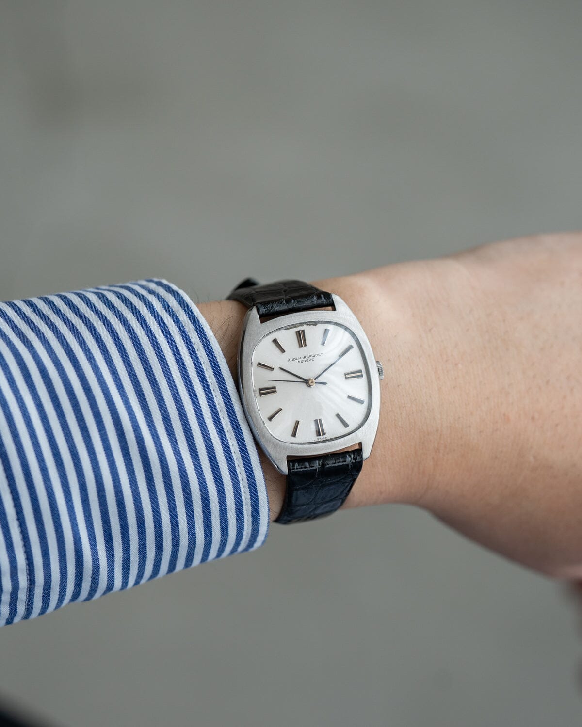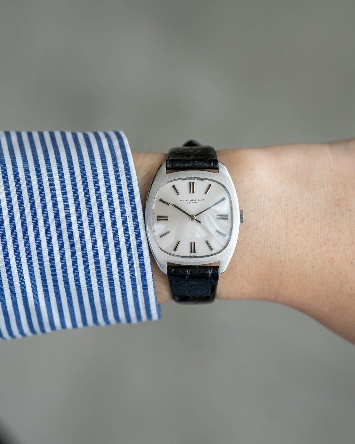This is a stainless steel AP watch from the late 60s and 70s, with a tonneau case, thin profile, Genta design and a lot of charm.