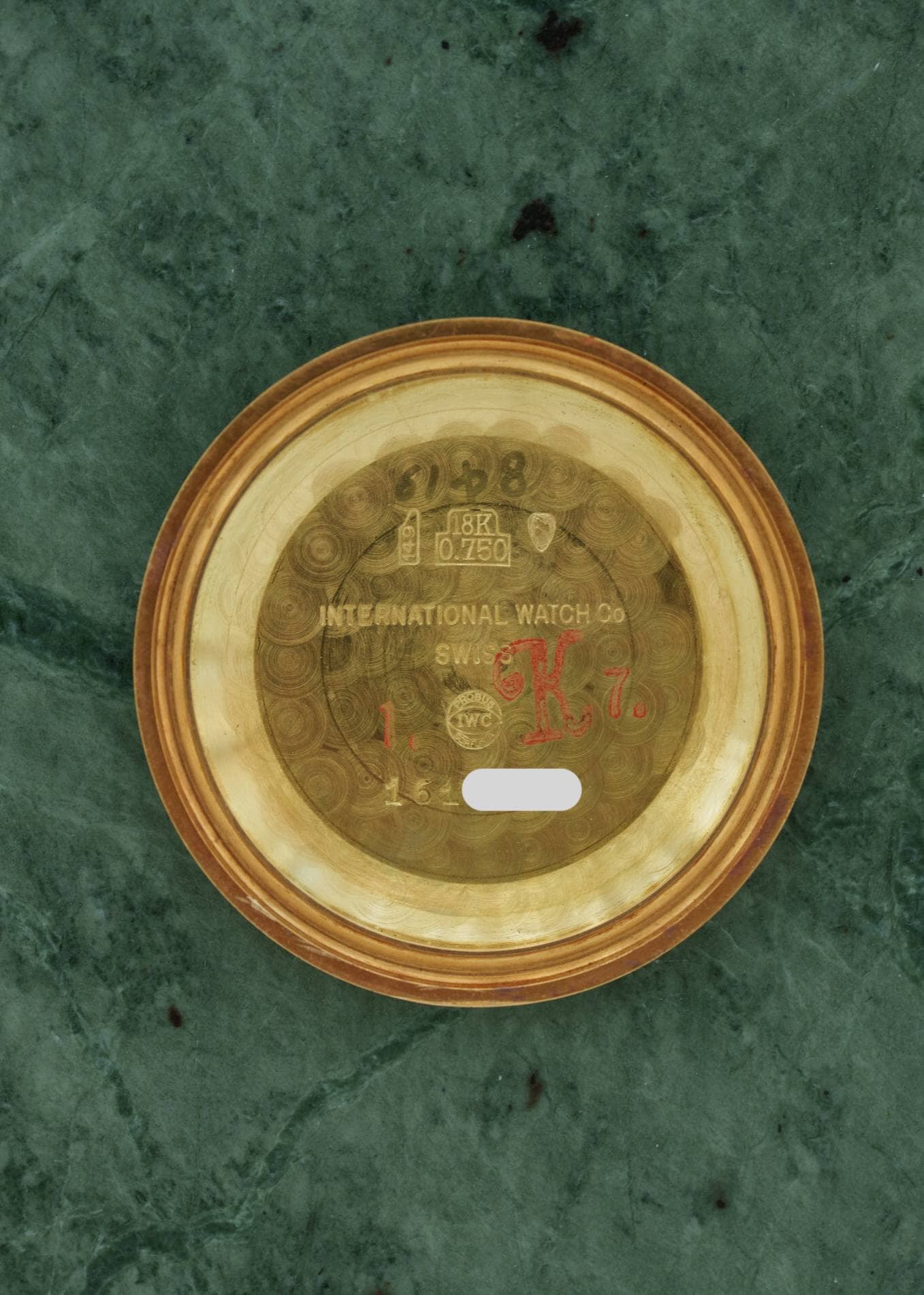 This watch is a self-winding round watch from the 1960s with a water-resistant case made of 18K yellow gold, a characteristic of IWC.