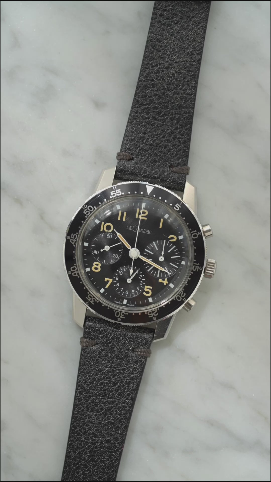 It was sold in the US under the LeCoultre name "Shark Deep Sea" and in Europe under the Jaeger-LeCoultre name "Vogue Chronograph".