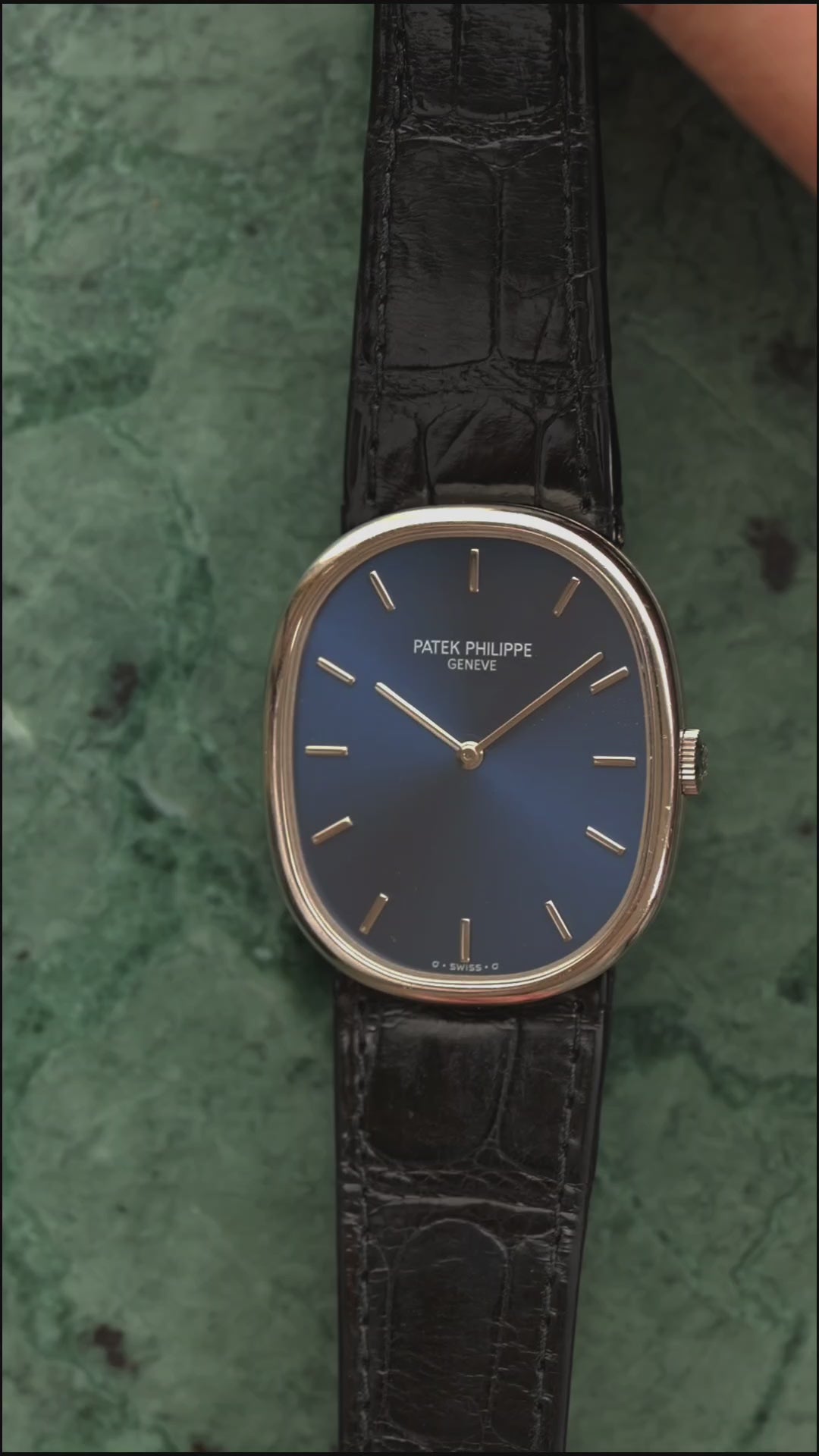 This watch is a hand-wound Golden Ellipse reference 3848 manufactured in the 1990s. The Golden Ellipse, which was first released in 1968, had a design that was completely different from the round and rectangular cases that had been available up until that point, and it made a big impact.