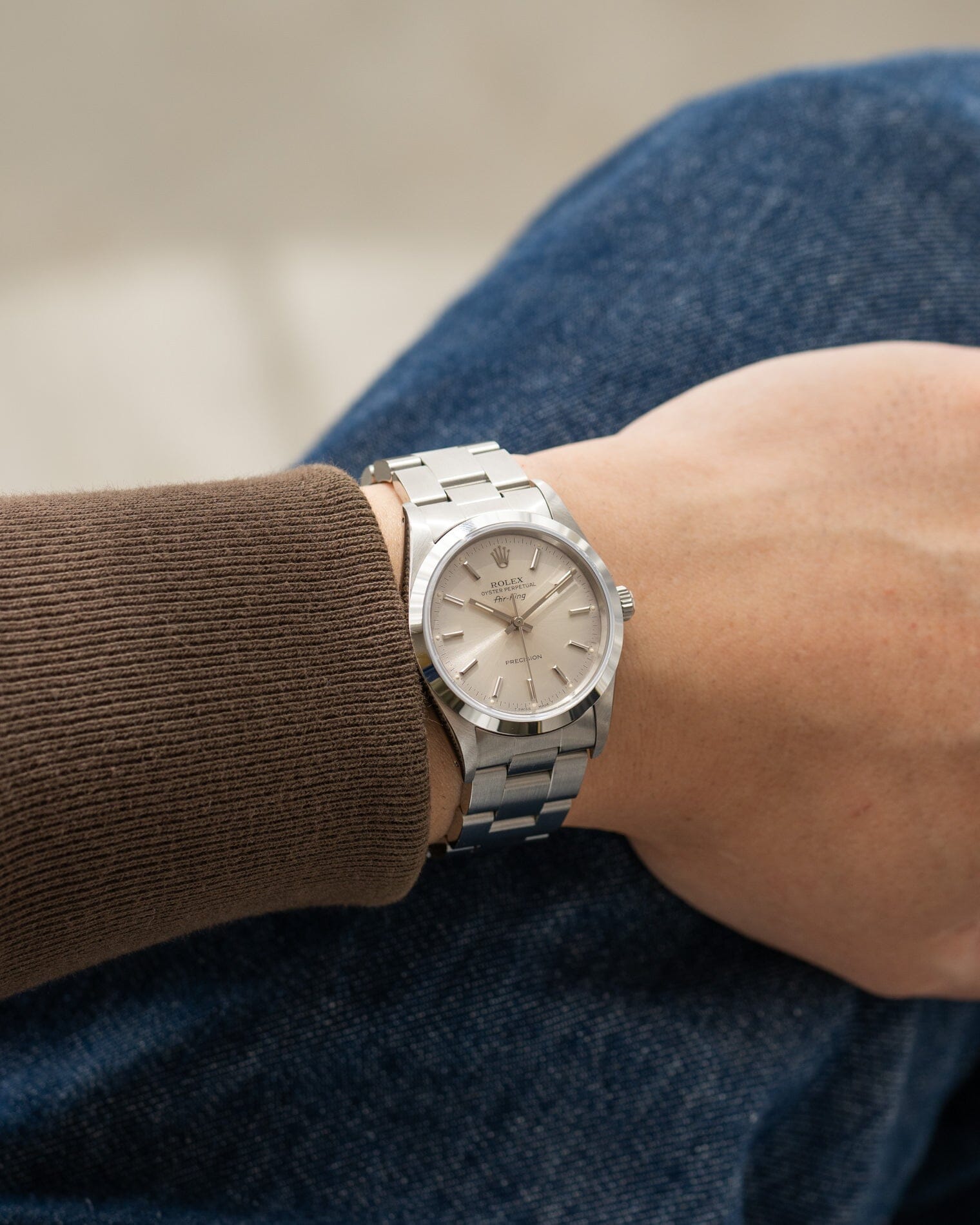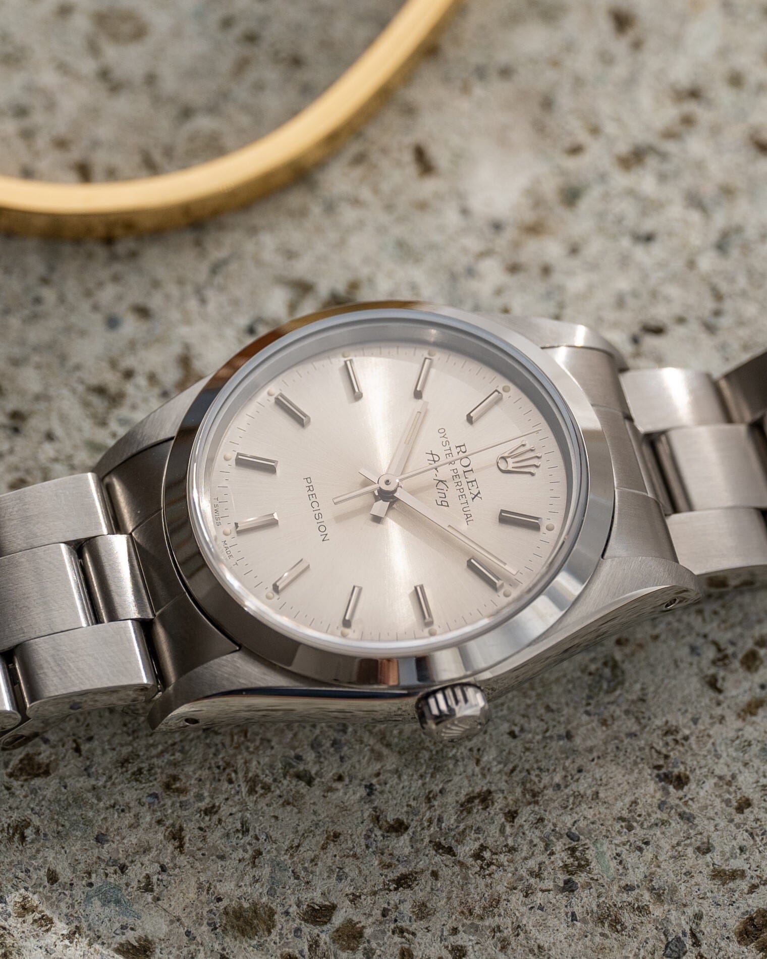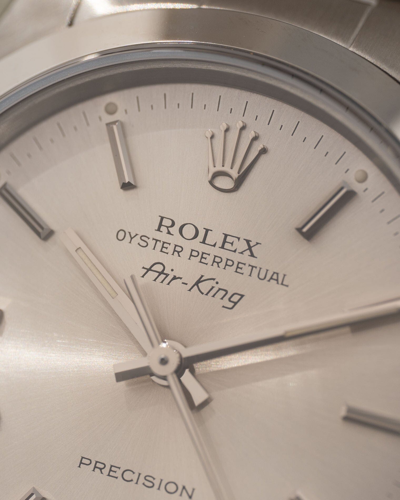 The 34mm Oyster case, three hands without date display, smooth bezel and minimalist design are the Air-King's most distinctive features.