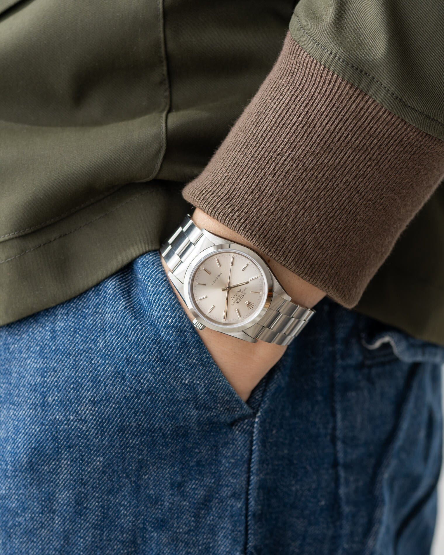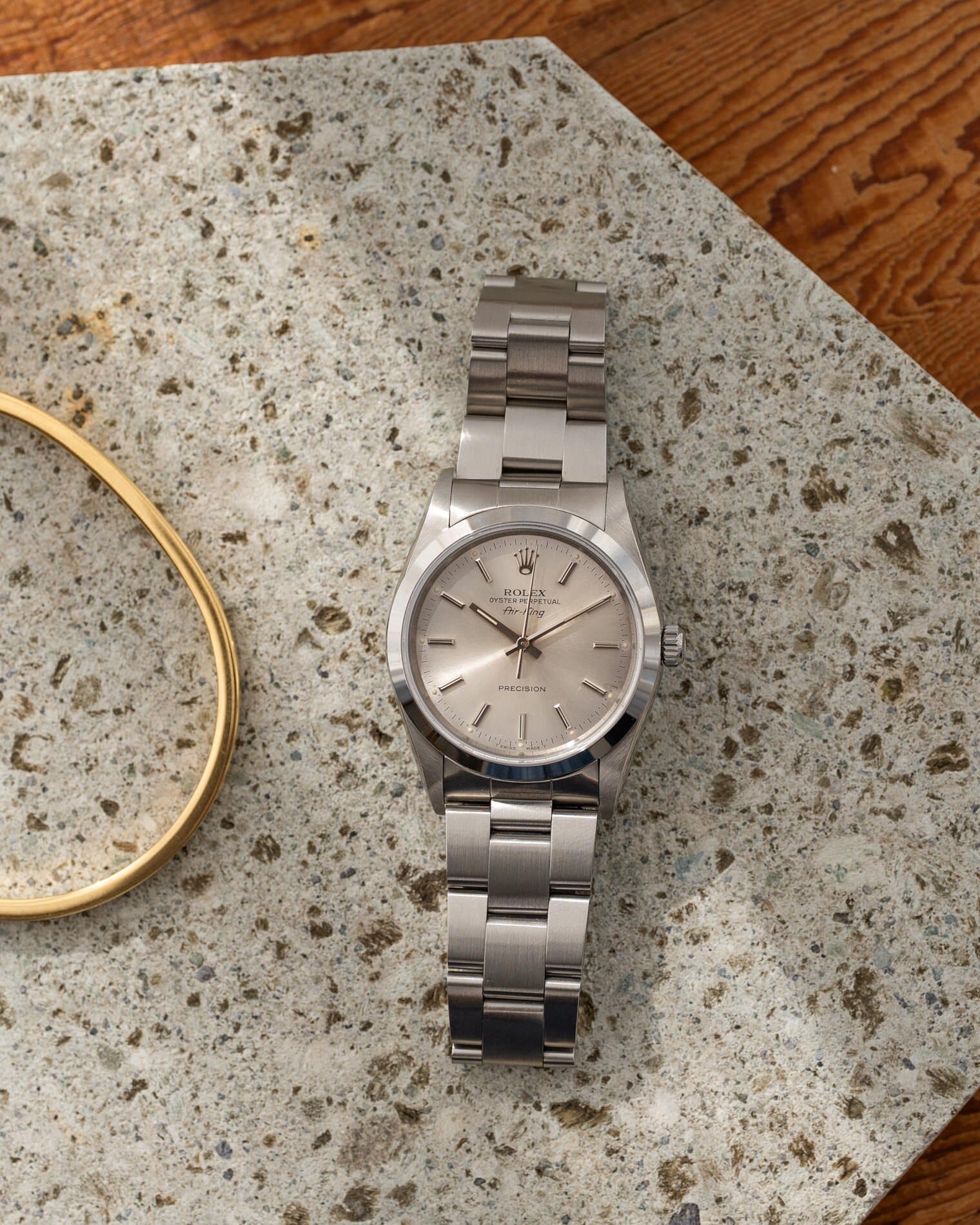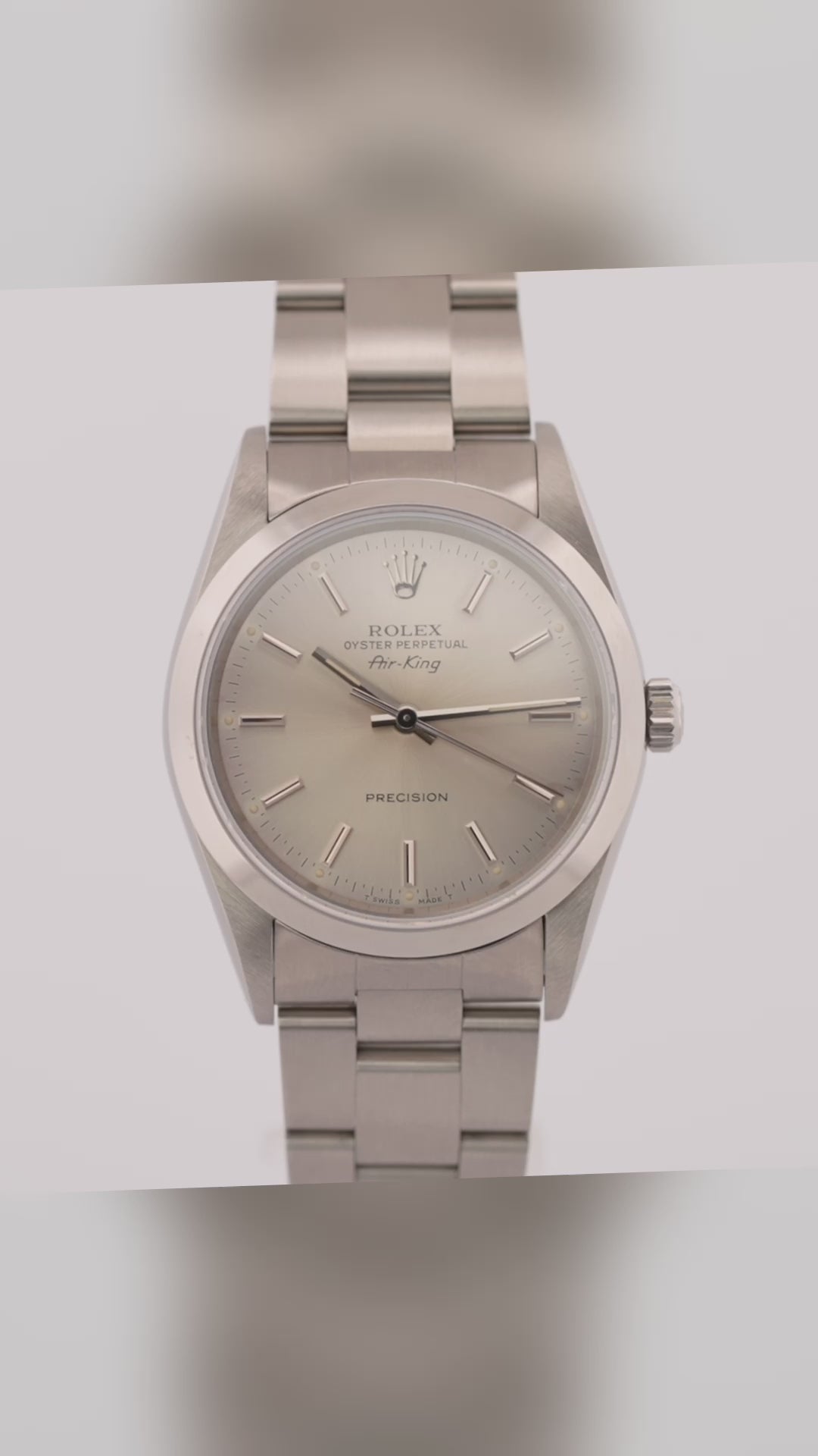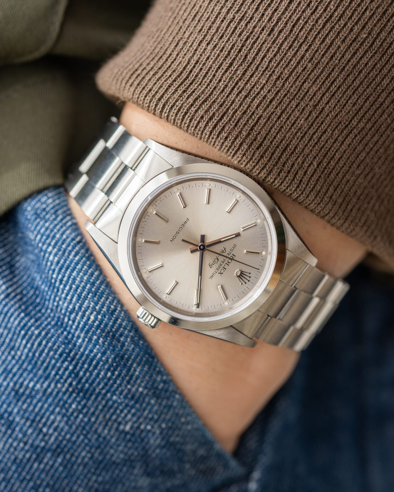 The 34mm Oyster case, three hands without date display, smooth bezel and minimalist design are the Air-King's most distinctive features.