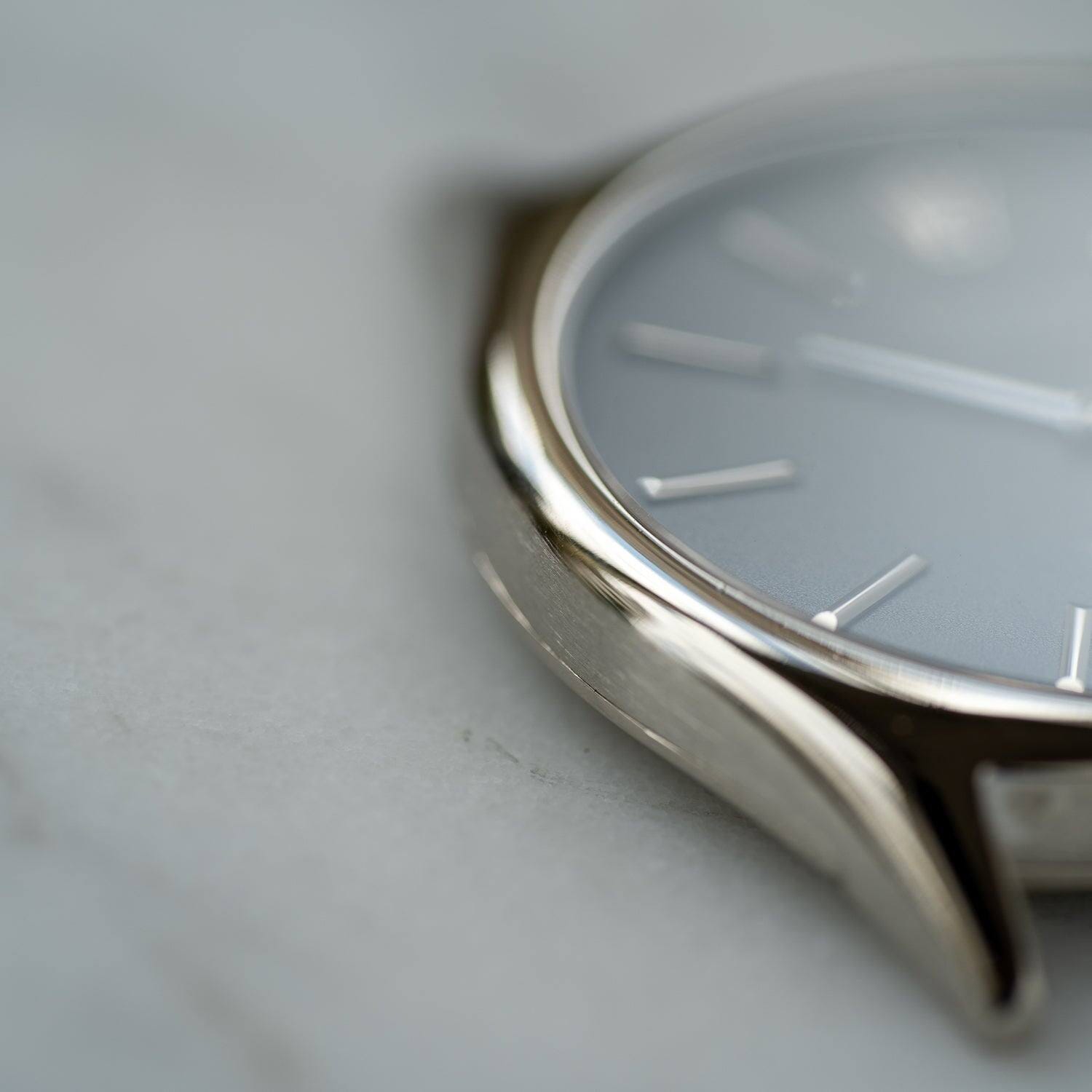 If you look closely, you can see that the front has a polished finish and the sides of the case have a hairline finish.