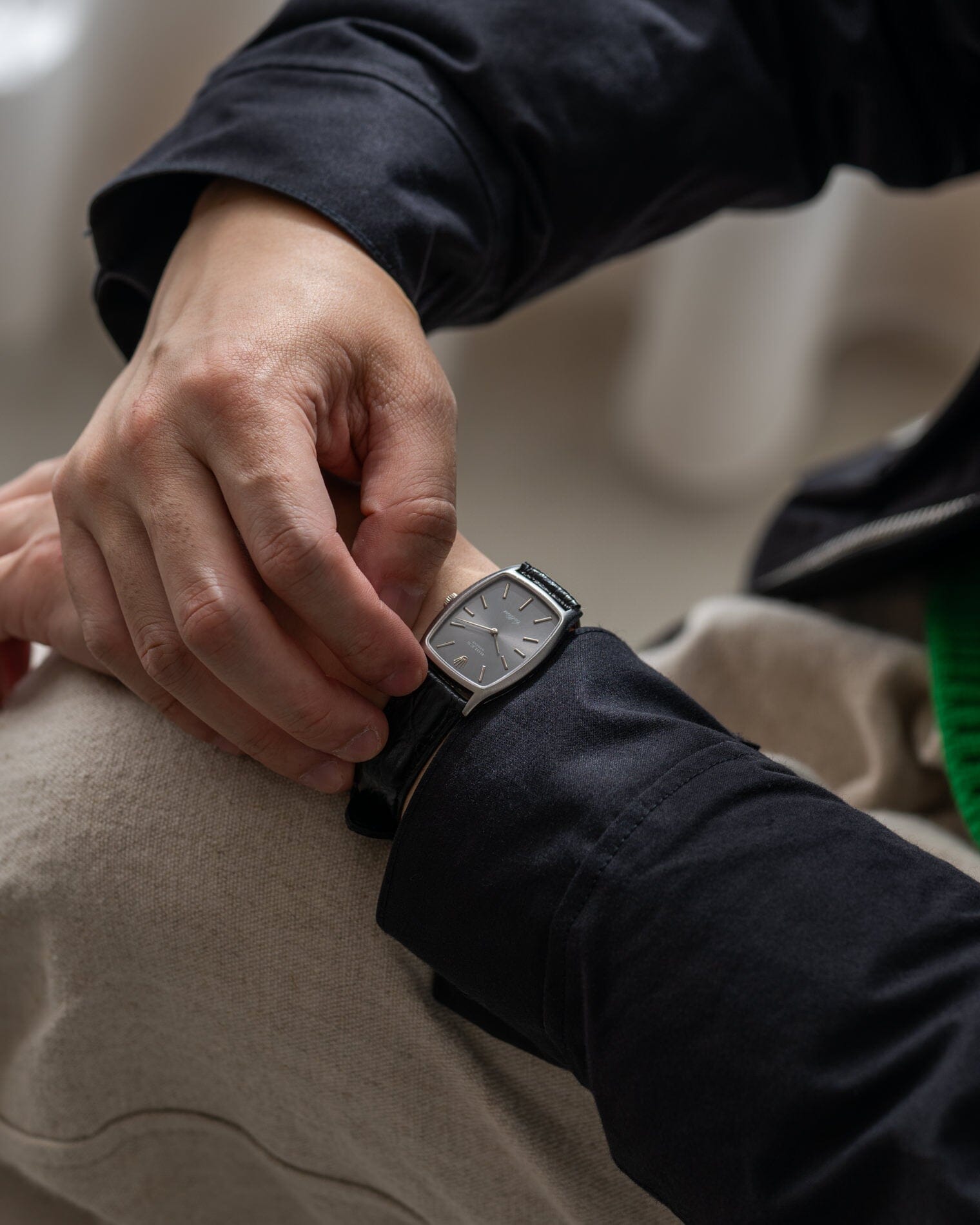 This reference 3807 is a rare tonneau type shape watch, and has an integrated design including the lugs. The case material is 18K white gold.