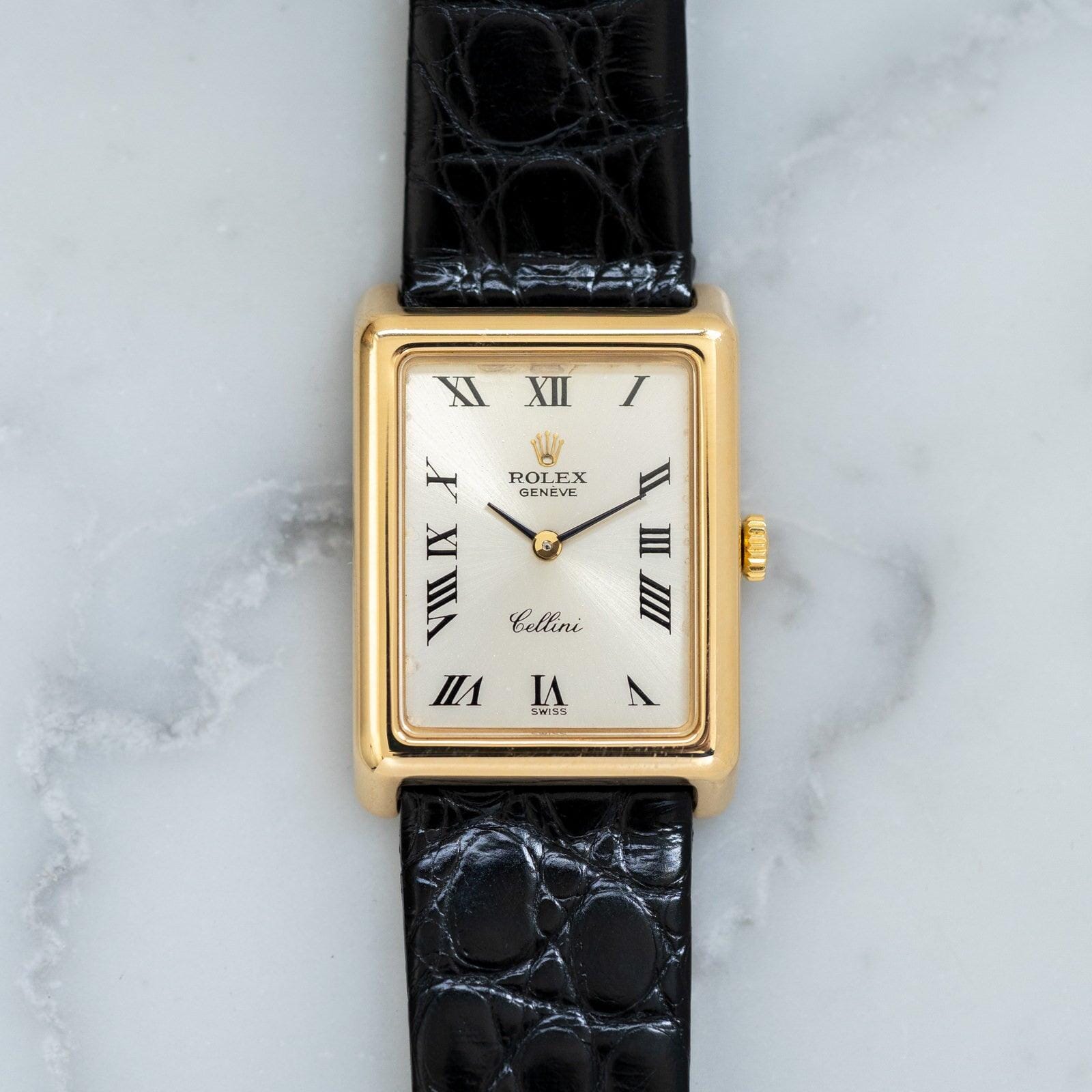 ROLEX Cellini 4103 Rectangle YG Silver Roman