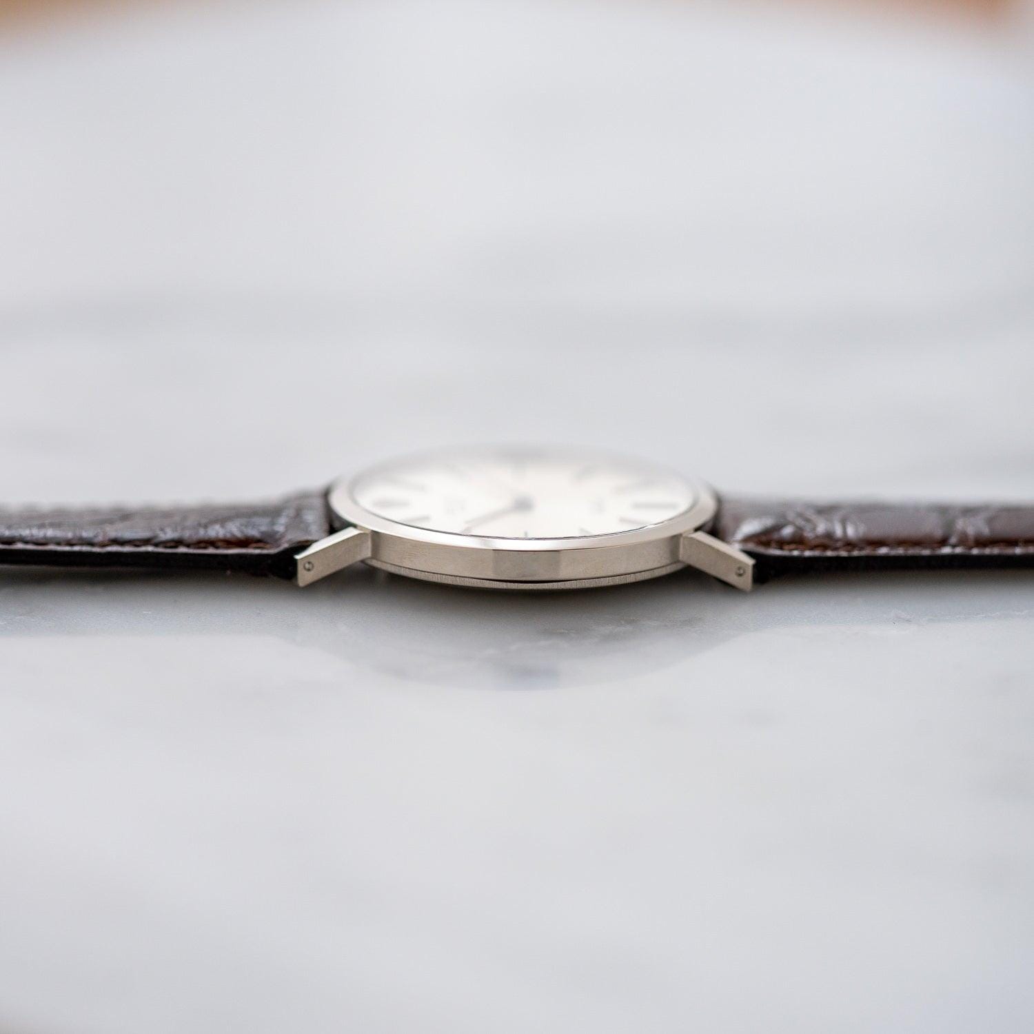 At first glance, it looks like a stainless steel case, and the point is that it is gold but not unpleasant. In addition, it is very thin because it uses a hand-wound 2-needle movement.