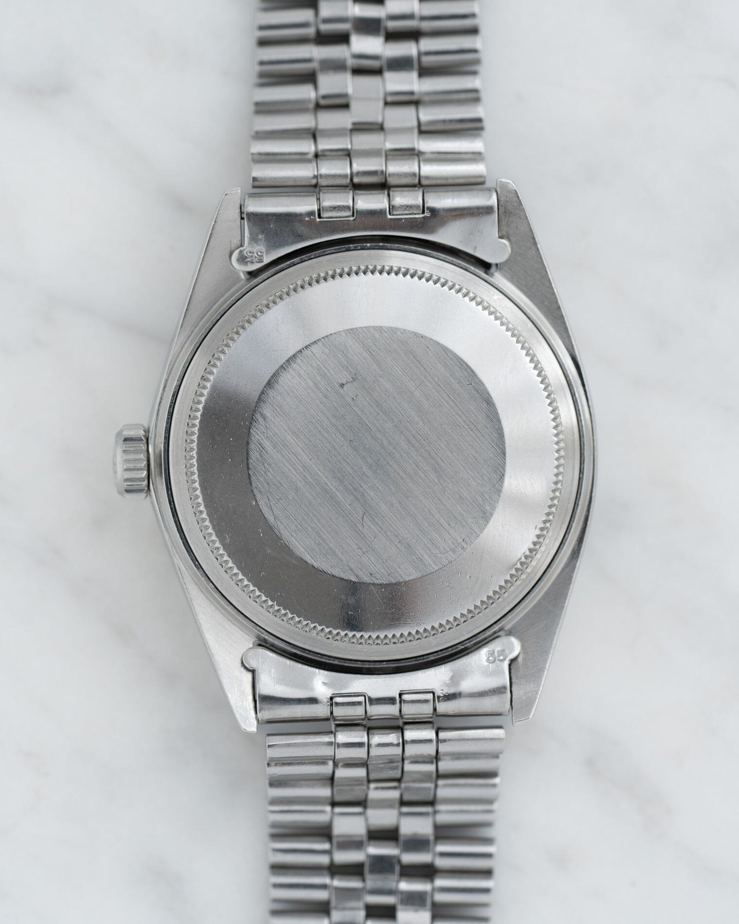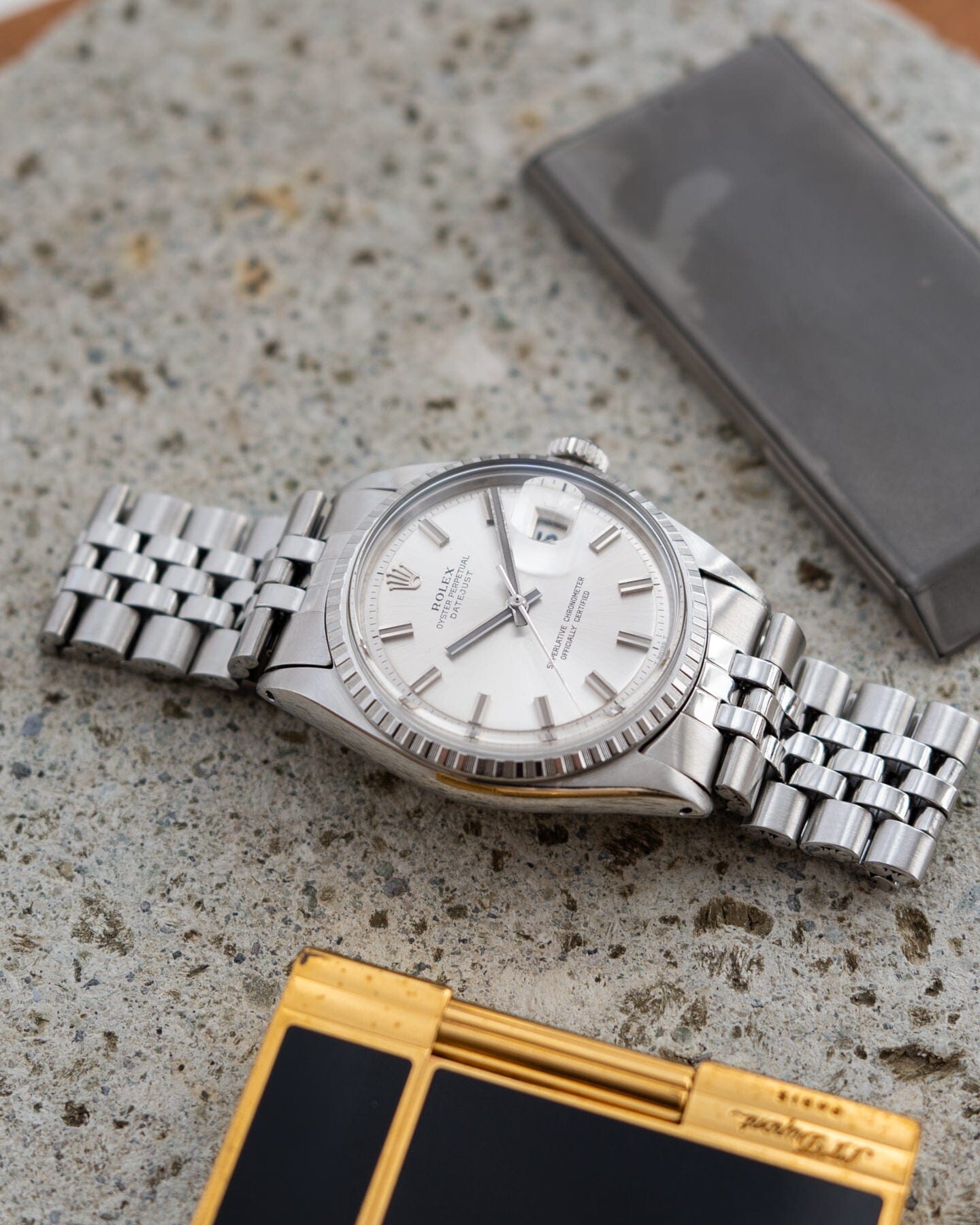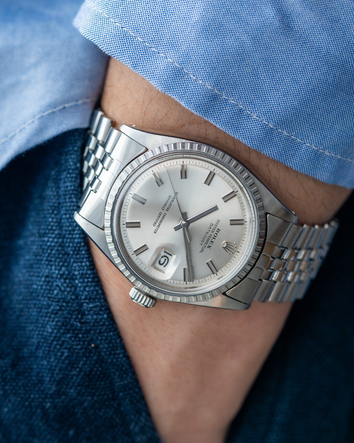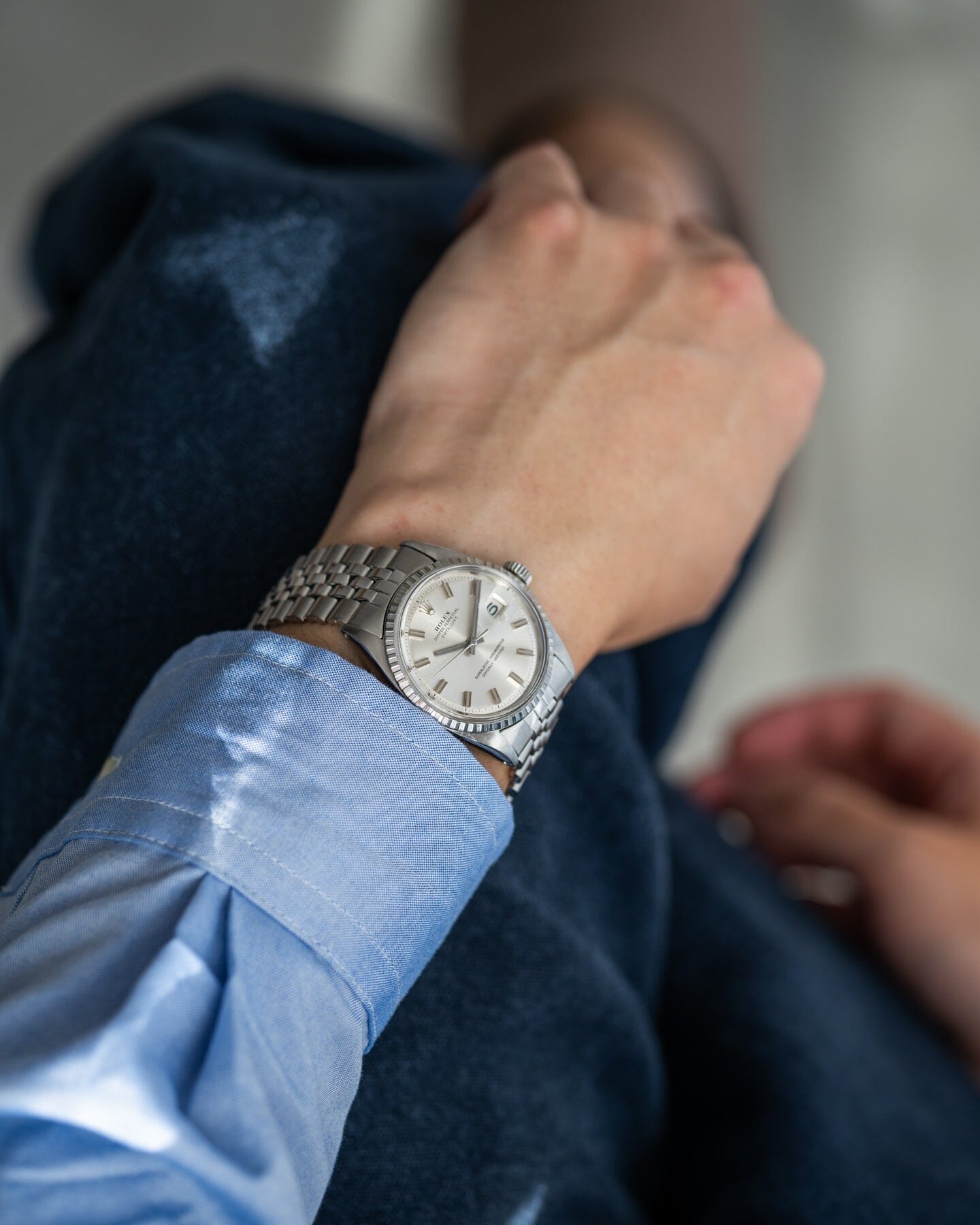 The rounded plexi crystal and the dial with one step down at the outer edge are also unique details of a vintage Datejust.