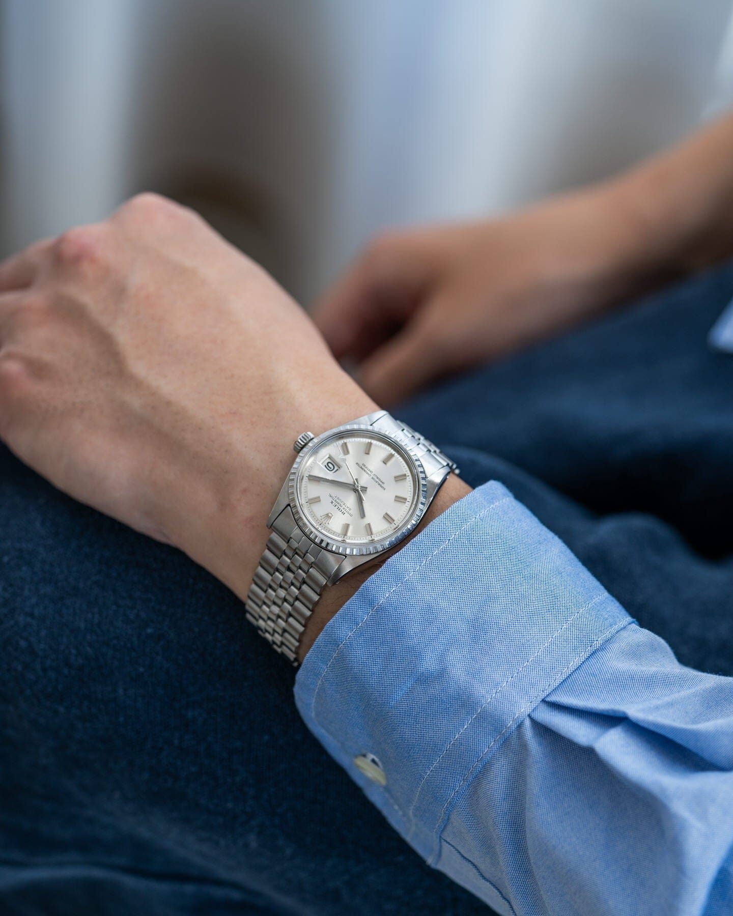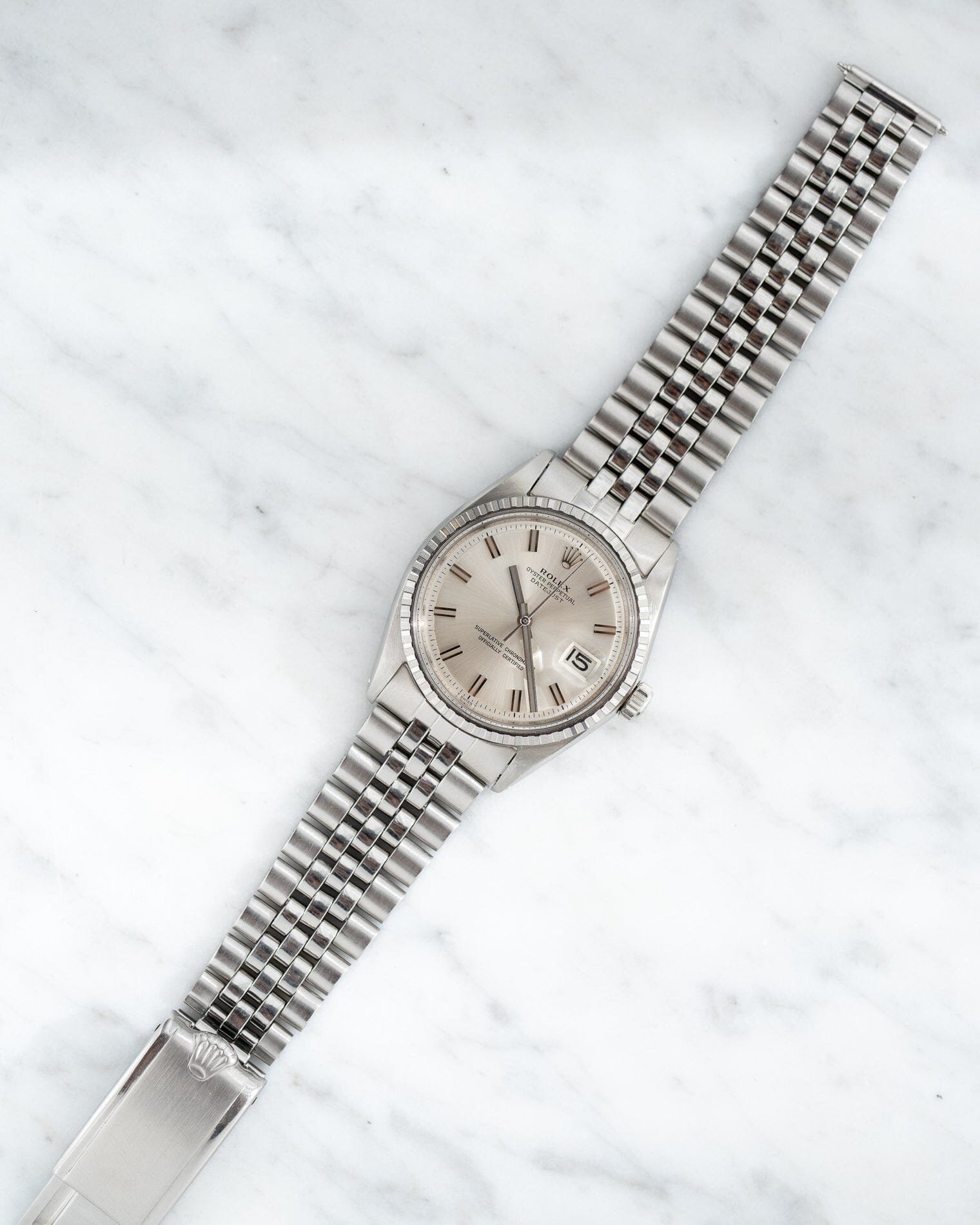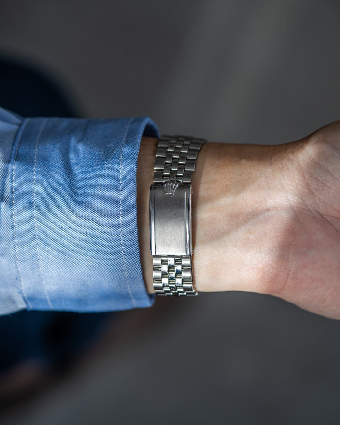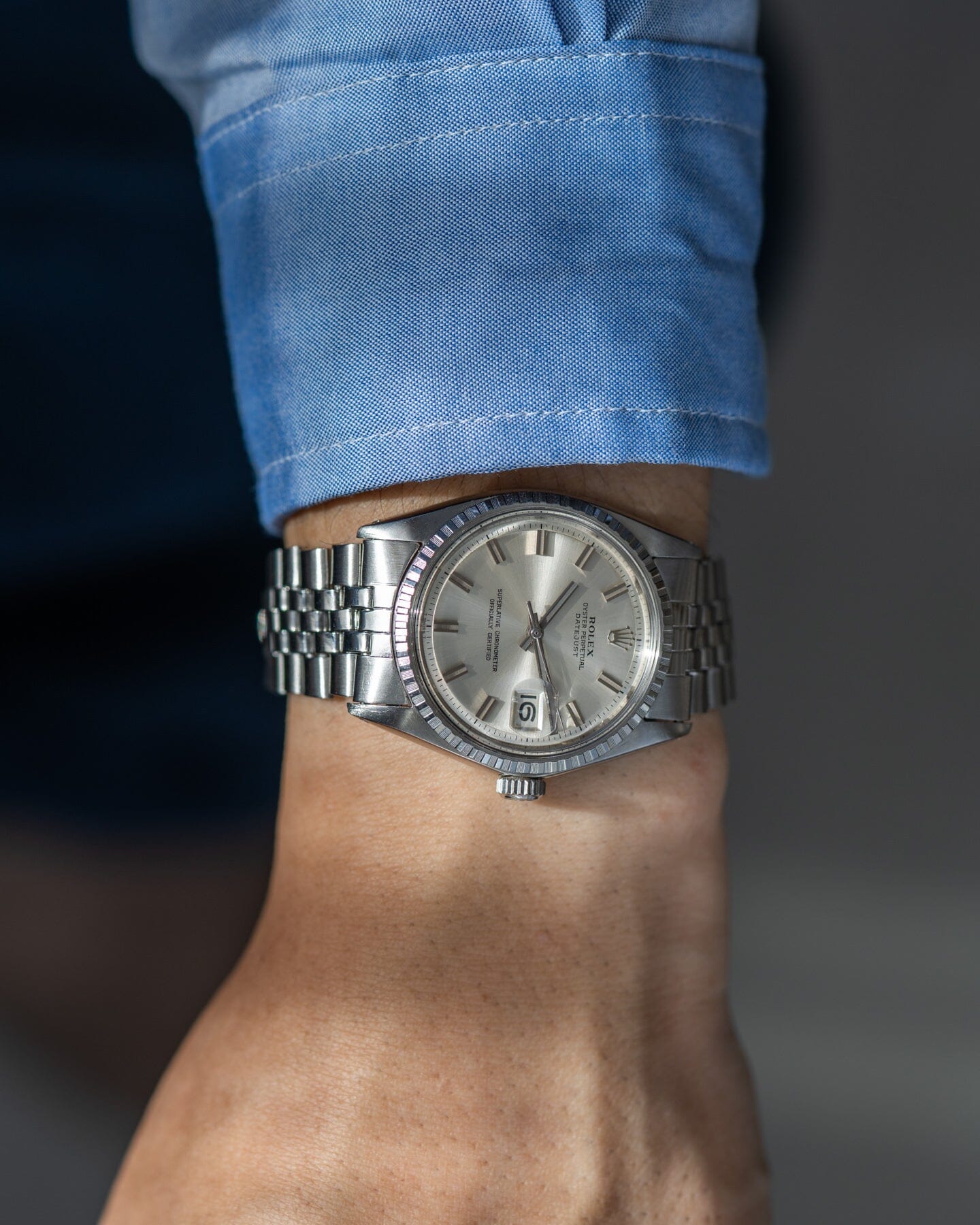 The rounded plexi crystal and the dial with one step down at the outer edge are also unique details of a vintage Datejust.