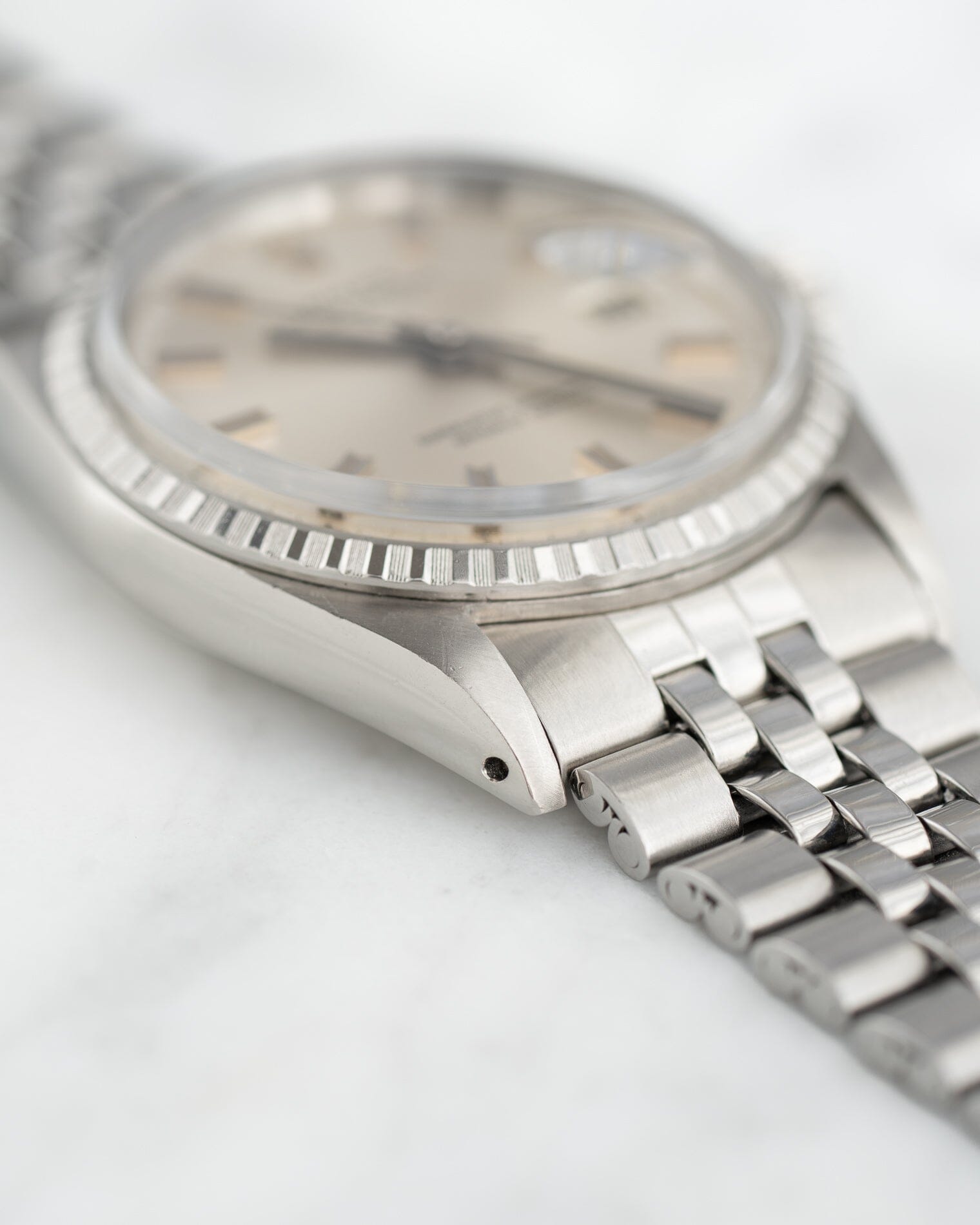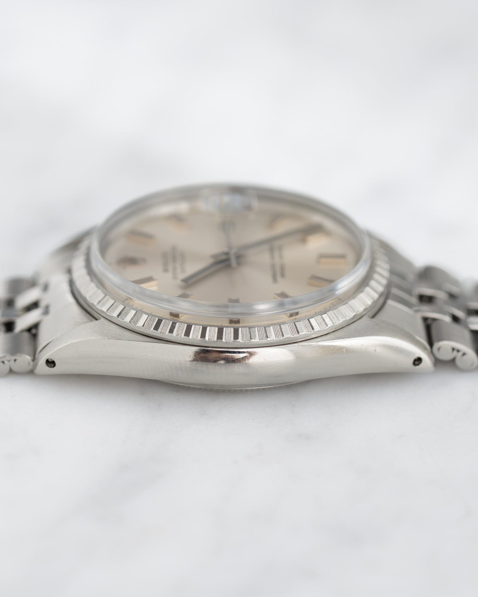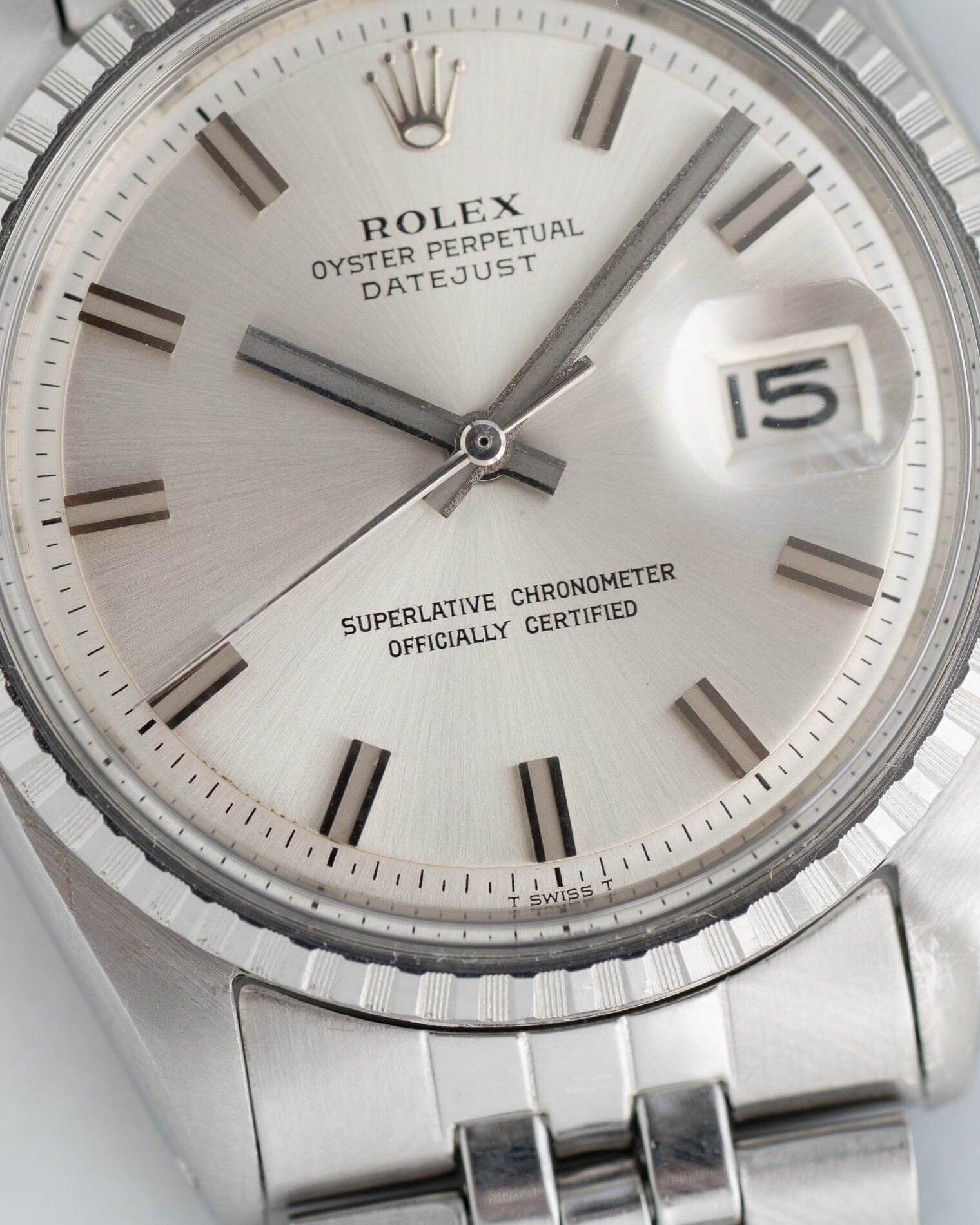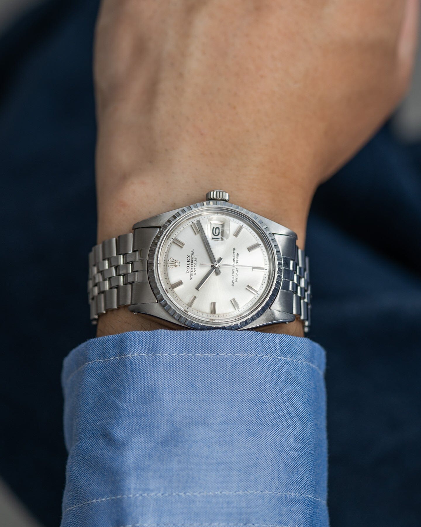 The rounded plexi crystal and the dial with one step down at the outer edge are also unique details of a vintage Datejust.