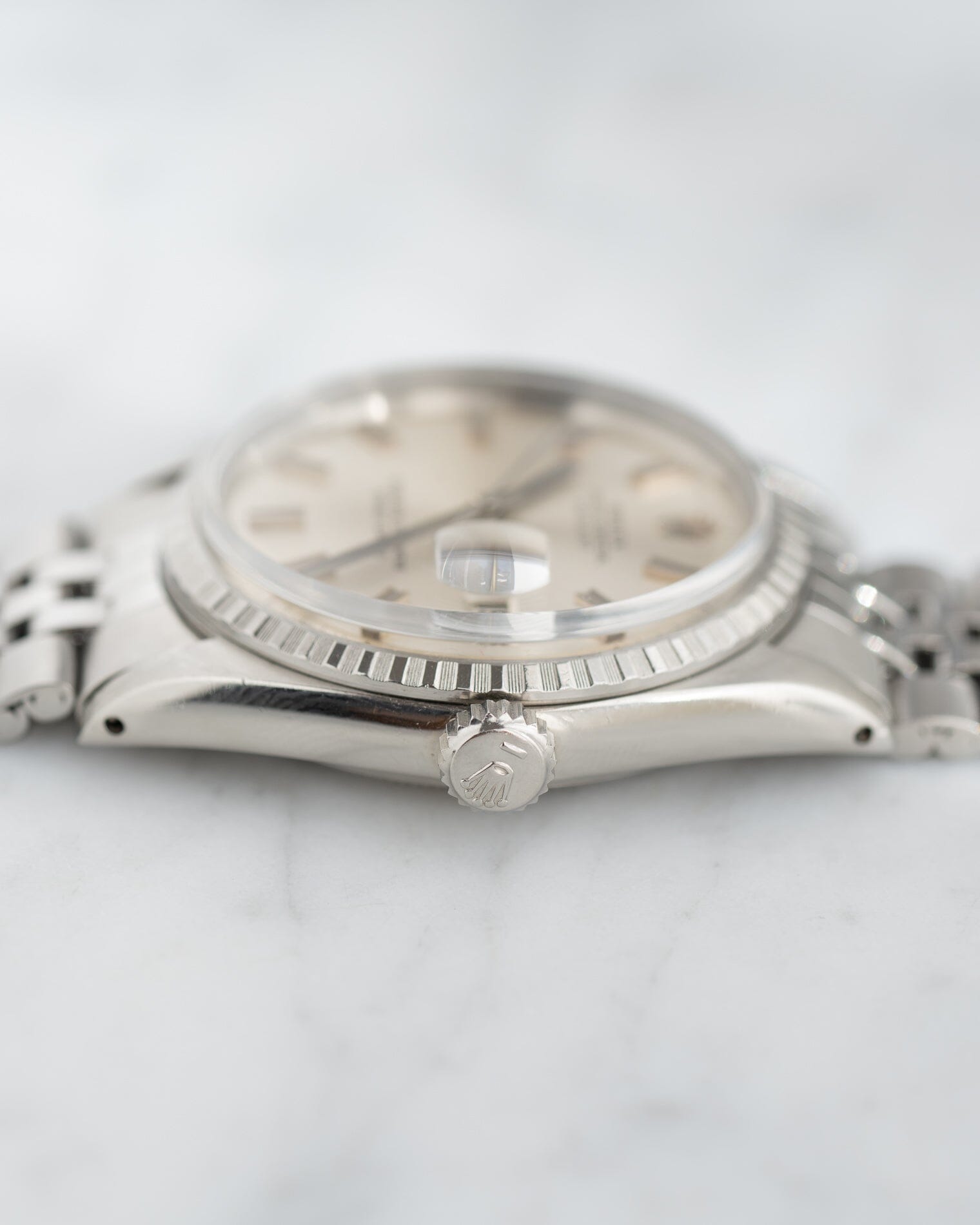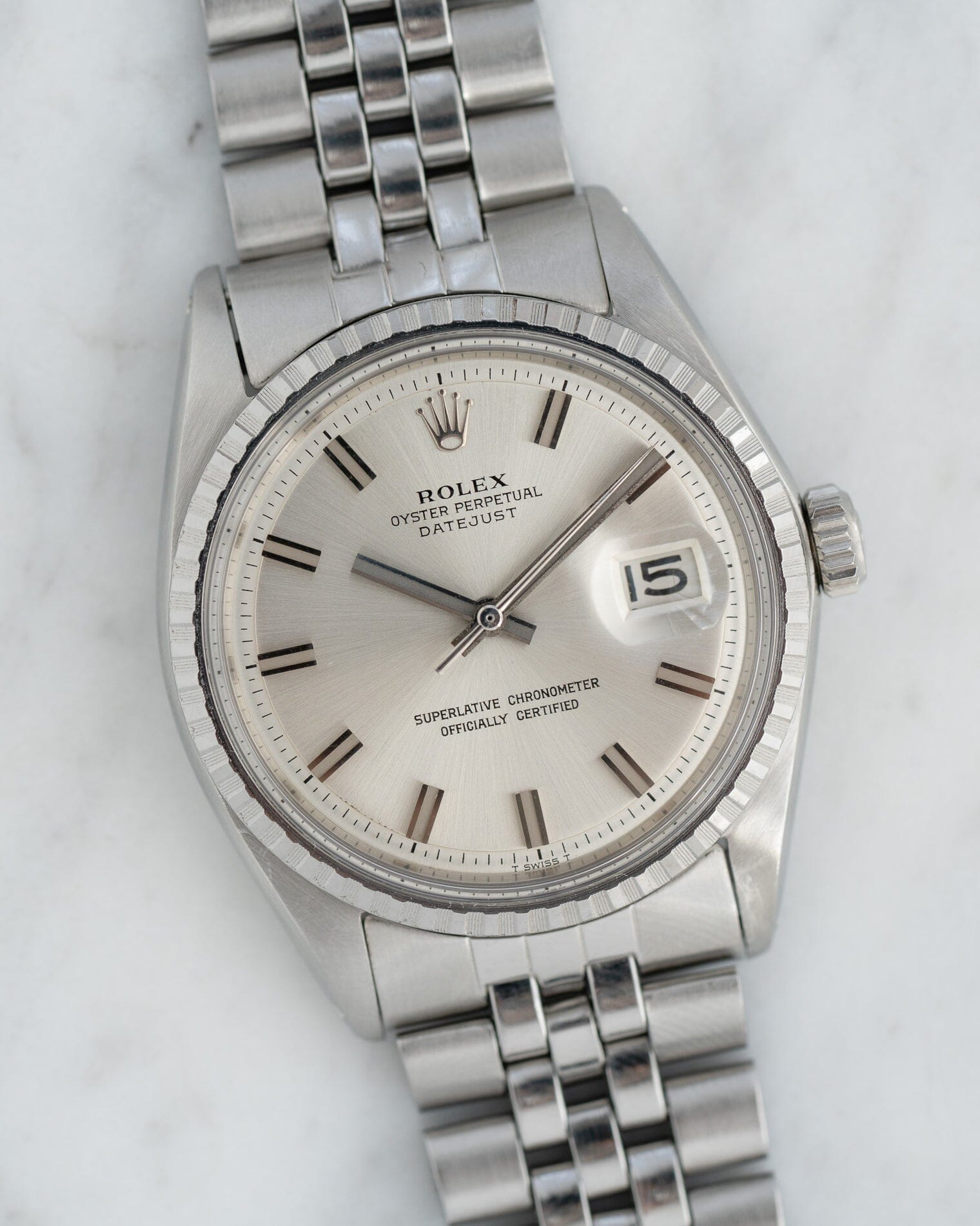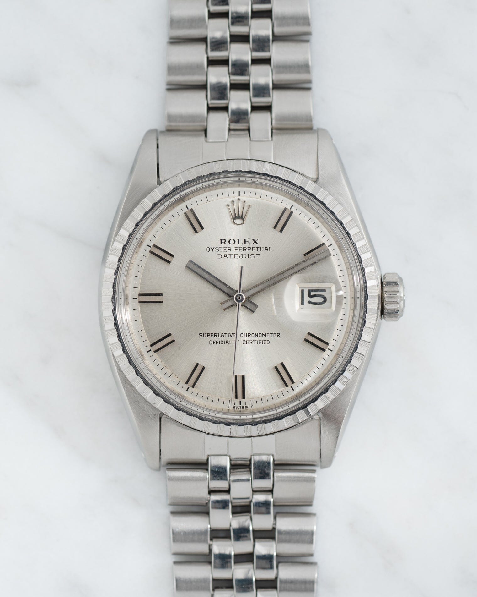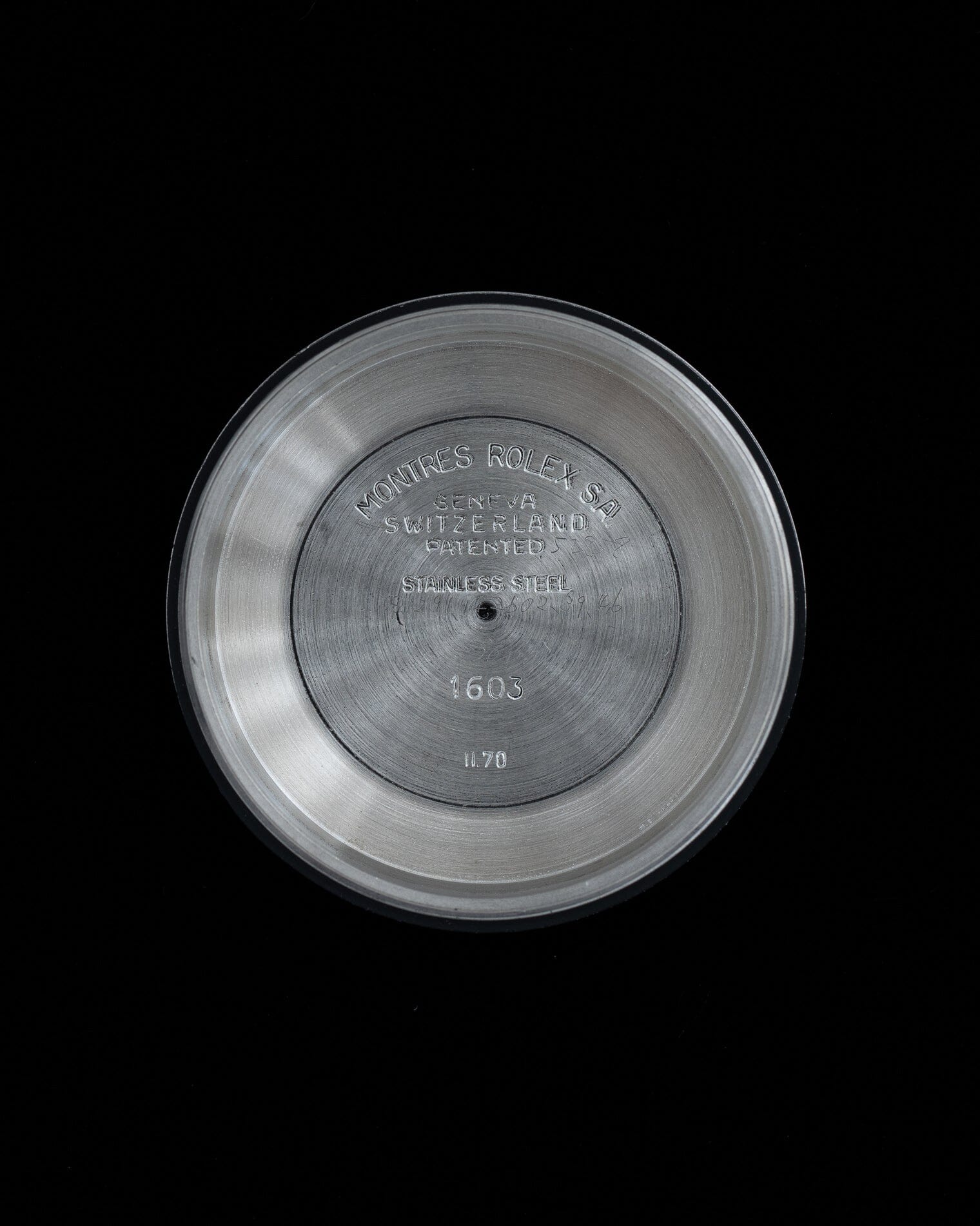 It looks a little similar to the Datejust reference 1601, but the difference is that this 1603 has a stainless steel engine-turned bezel, while the 1601 has a white gold fluted bezel.