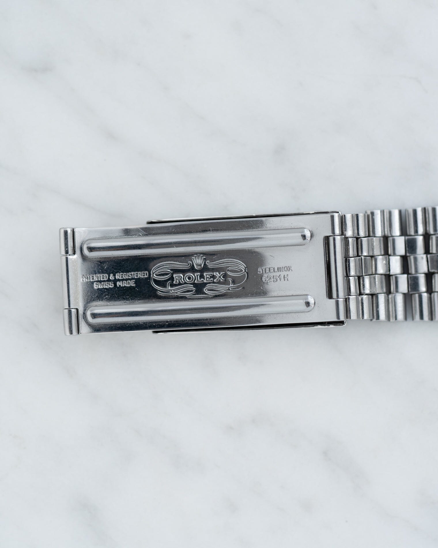 The bracelet is a Jubilee bracelet 6251H, with folded links. The end link 55, and it is in relatively good condition, although it has some drooping due to its age.