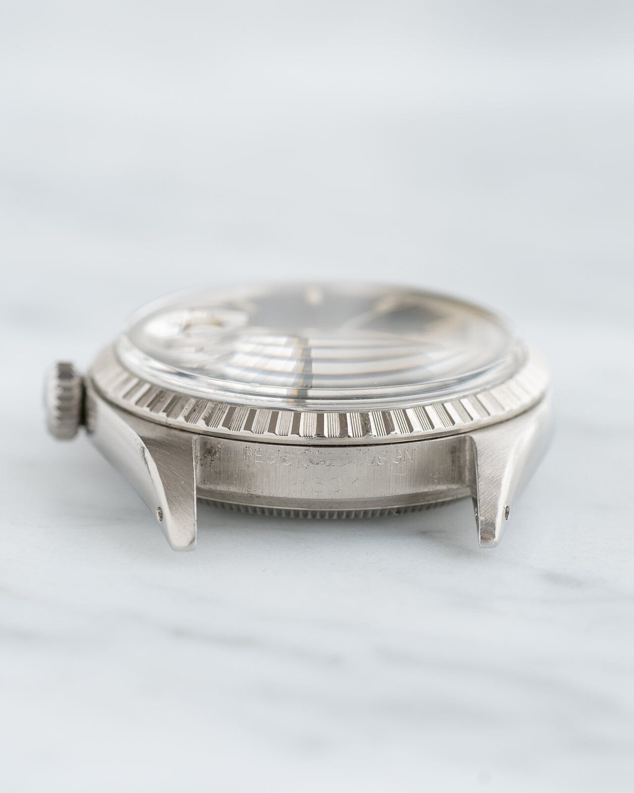 It looks a bit similar to the same Datejust Ref.1601, but this 1603 has an engine-turned bezel made of stainless steel.