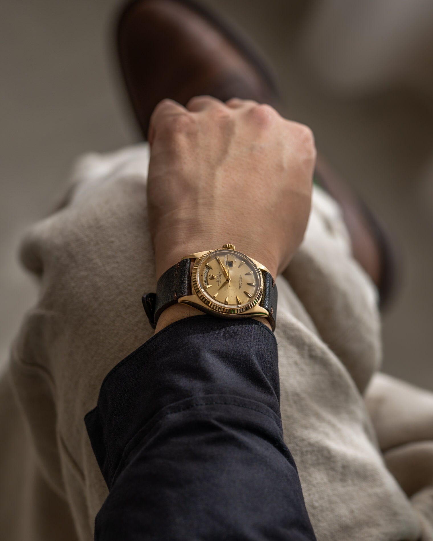 The Day-Date is Rolex's ultimate status watch. Introduced in 1956, it was the world's first waterproof self-winding chronometer wristwatch that displayed the date and day of the week in full spelling on the dial.