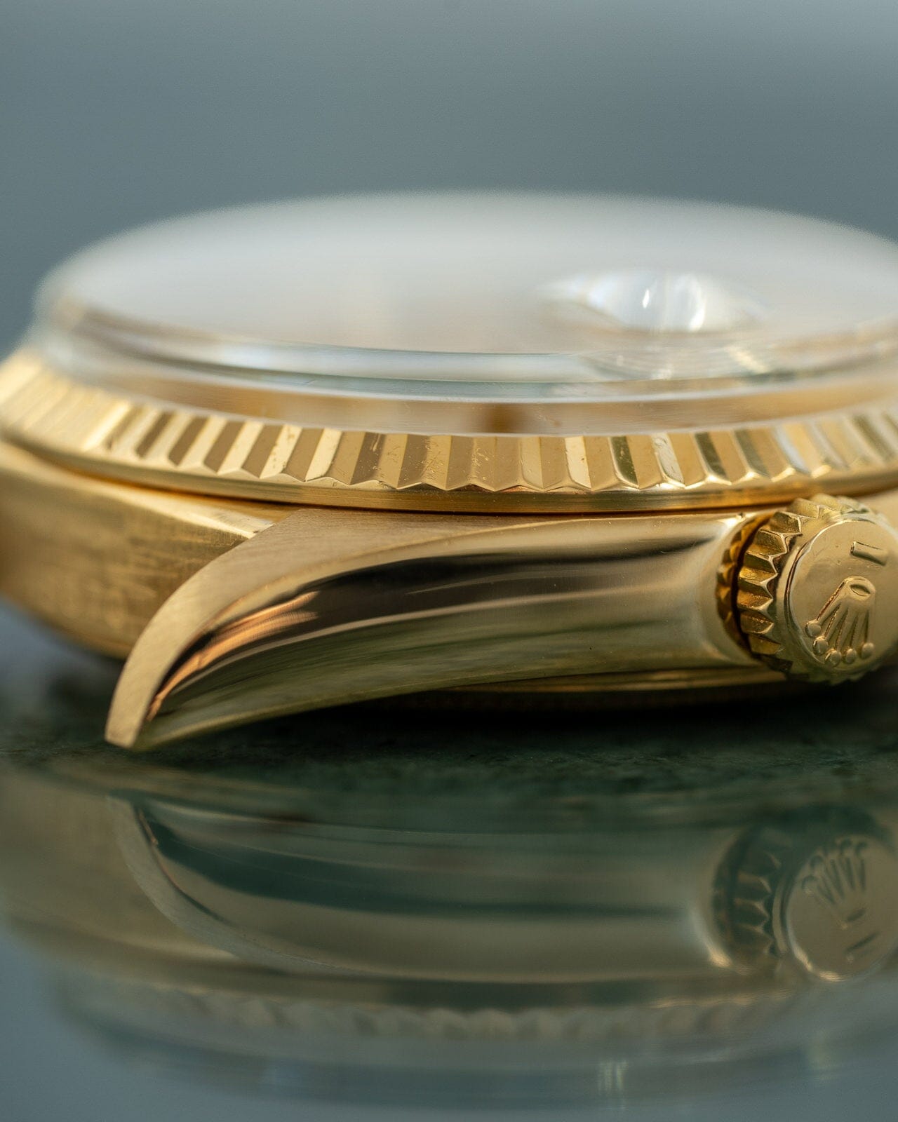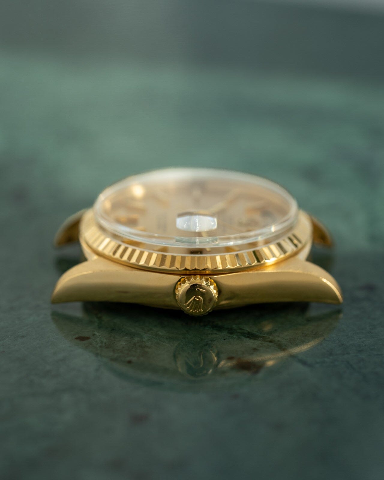 The outer circumference of the dial is one step down, and the design of the dial is tightly condensed, which is a unique vintage detail also seen in other Datejust watches of the same age.