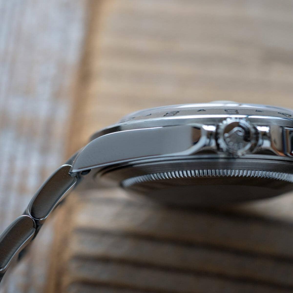 Also, depending on the case or bracelet, there are cases where multiple finishes such as mirror finish and hairline finish are mixed, but there are not many craftsmen who can distinguish between them and finish them at a high level.