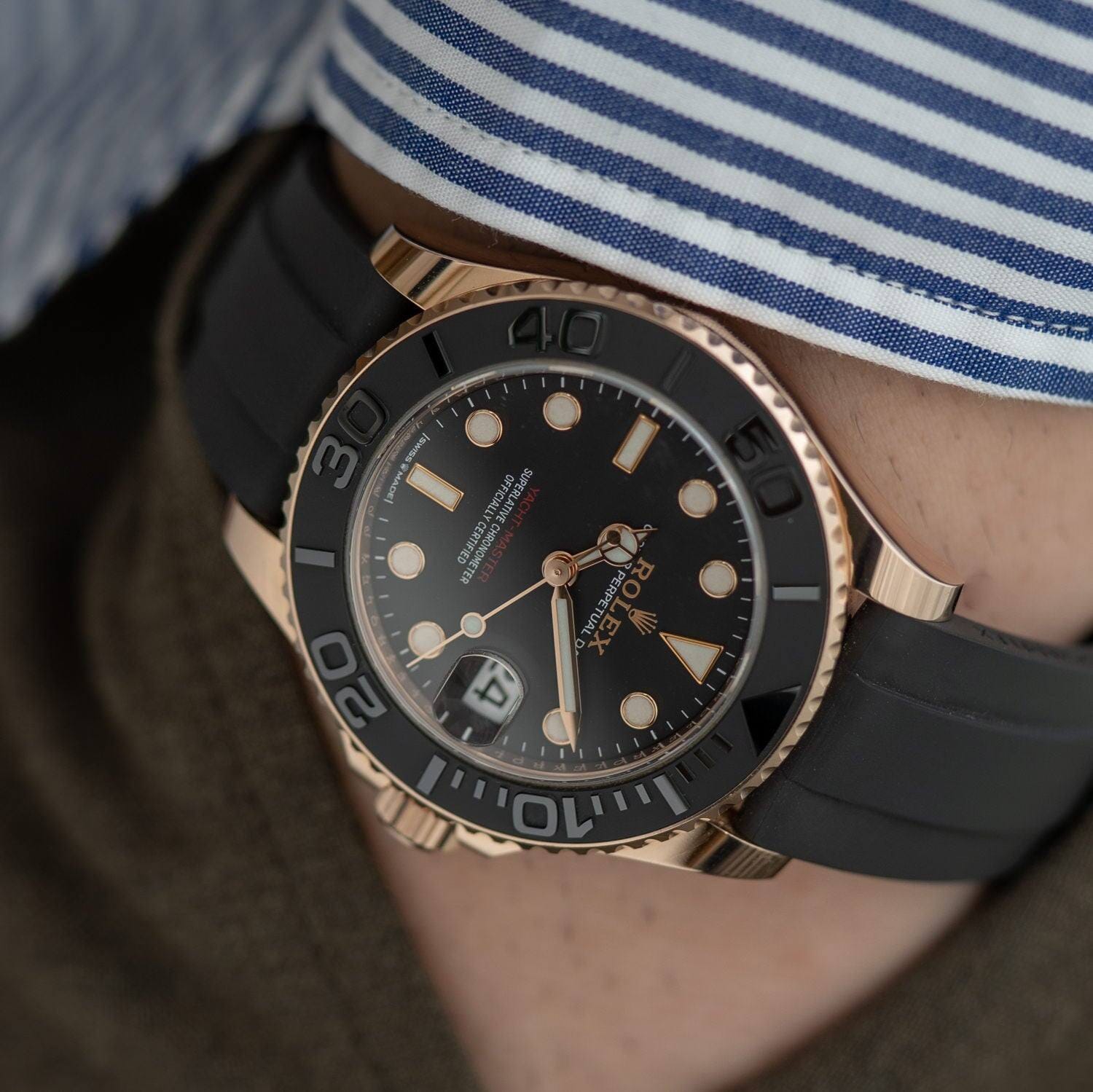 The bezel part is black ceramic, so it looks a little smaller than other yacht-master watches of the same size.